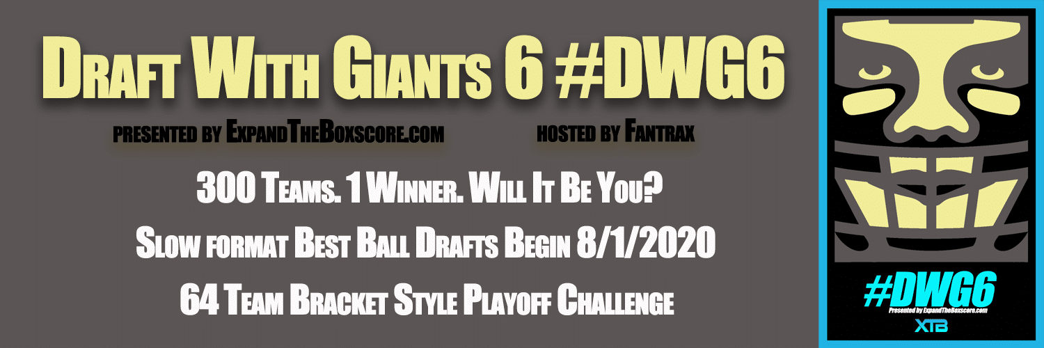 Welcome to the #DWG6 Draft Hub! Thanks to Expand The Boxscore’s Brian Creagh, some very interesting and cool data is now available to track all of the teams, all the divisions, and all of the players. Also a thank you to Fantrax.com for hosting Draft With Giants for the 4th straight season, in which we are now up to 300 participants. For more on the history of DWG, check out this episode with the creator Andy Singleton on QBList.com