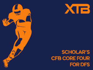 John Laub, aka The Gridiron Scholar, joins Expand The Boxscore to deliver his weekly Core Four lineup. Every Saturday morning throughout the College Football season, he will be providing readers with the necessary knowledge to generate a Cash Game lineup for DraftKings, by identifying four players who should anchor lineups in 50-50s and Double Ups. The object is not to pinpoint well known players such as QB Tua Tagovailoa and RB Jonathan Taylor. For DFS diehards like the Scholar, those are easy selections to make. We are seeking value in Cash Games and searching for a Price Value (Projected Points/Salary x 100) over three times your investment. You will find the projected PV ratio on the far-right column of the Core Four. Let’s double your investments, and enjoy the games!